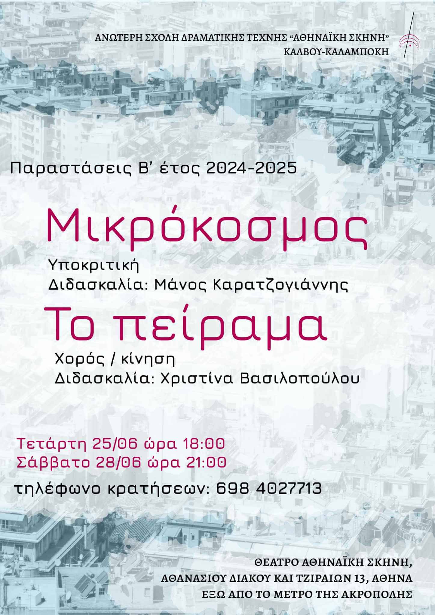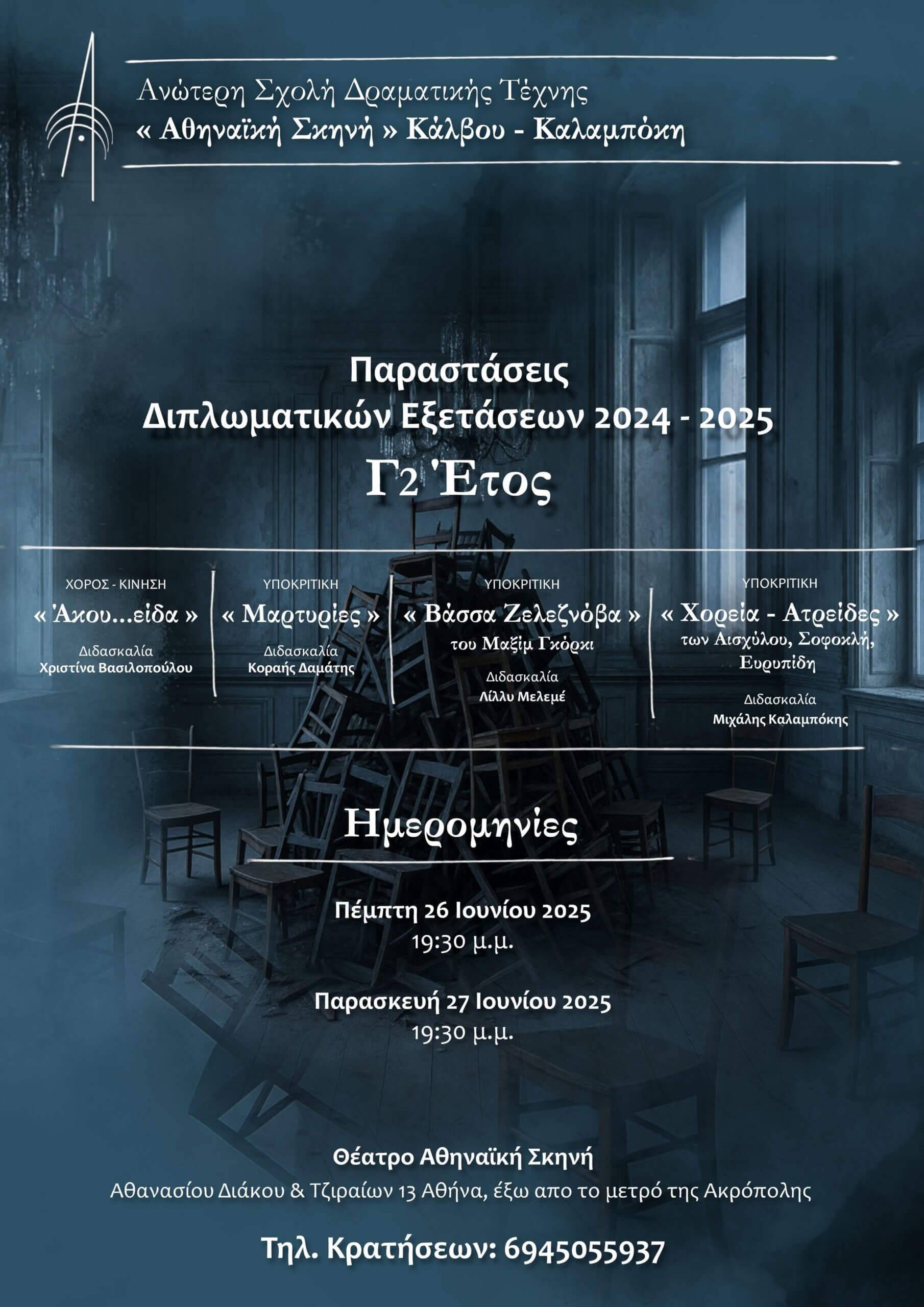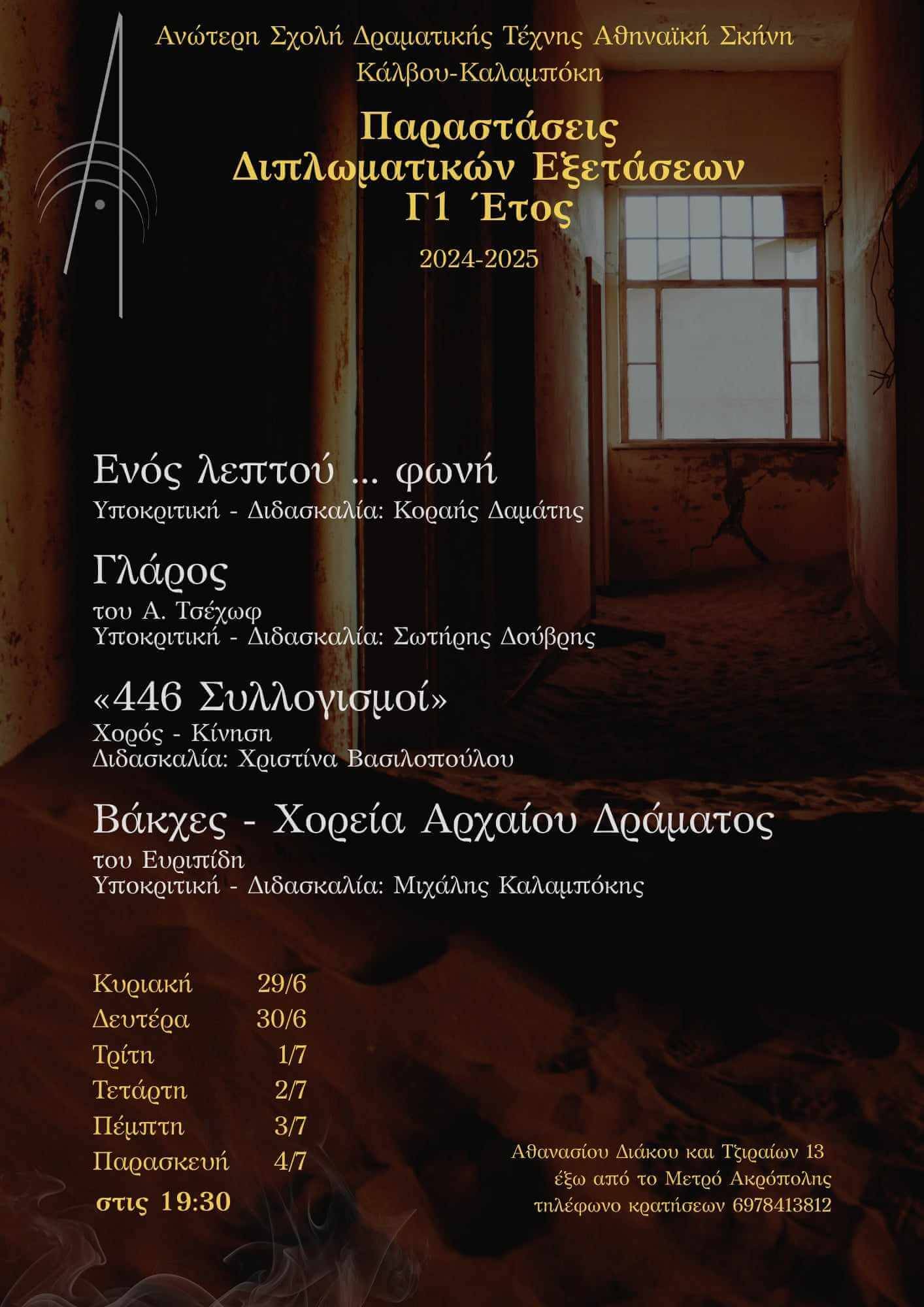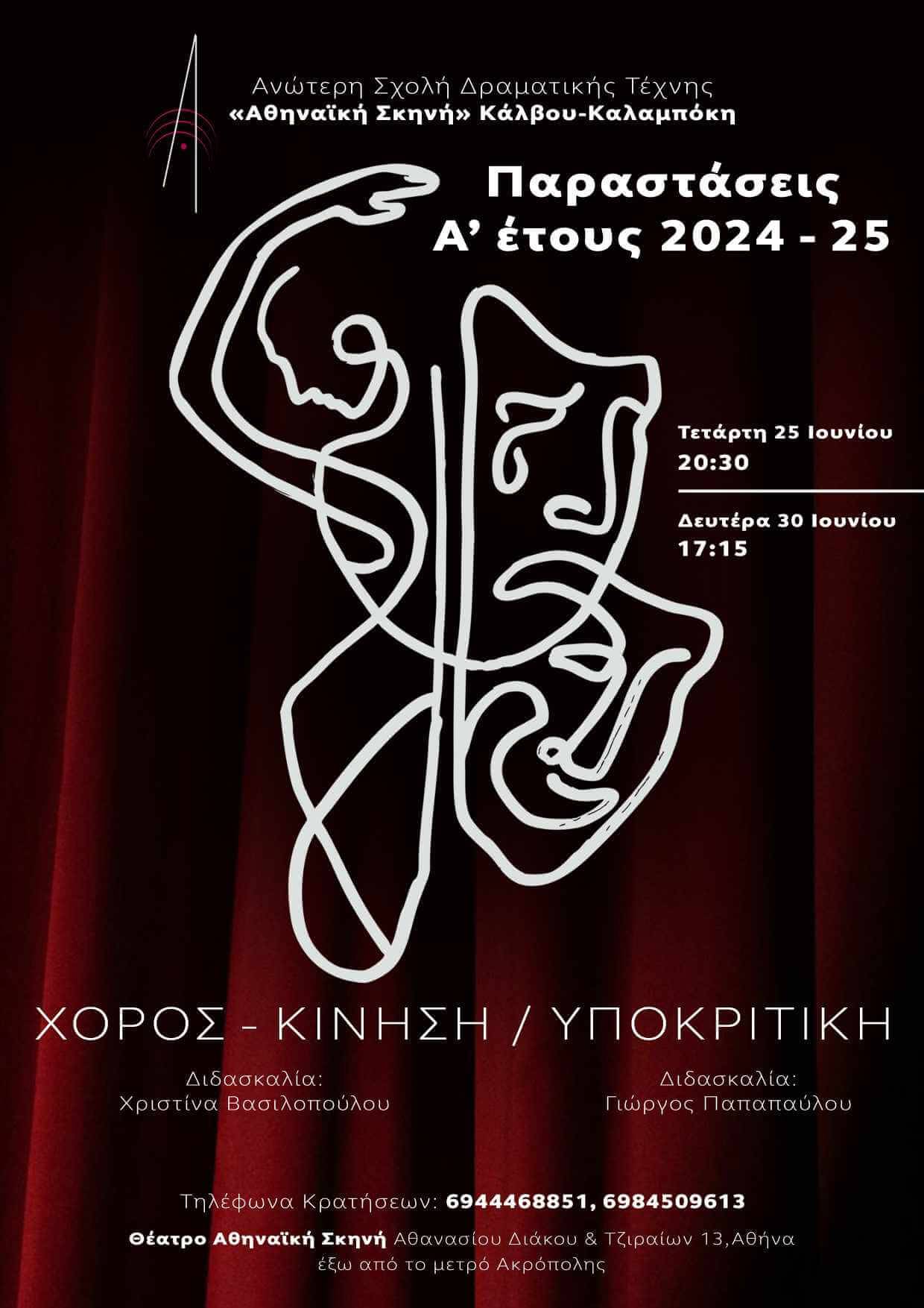 Ανοιχτές παραστάσεις όλων των τμημάτων της Ανώτερης Δραματικής Σχολής ‘’Αθηναϊκή Σκηνή’’ 2024-2025, (Α, Β,Γ έτη)