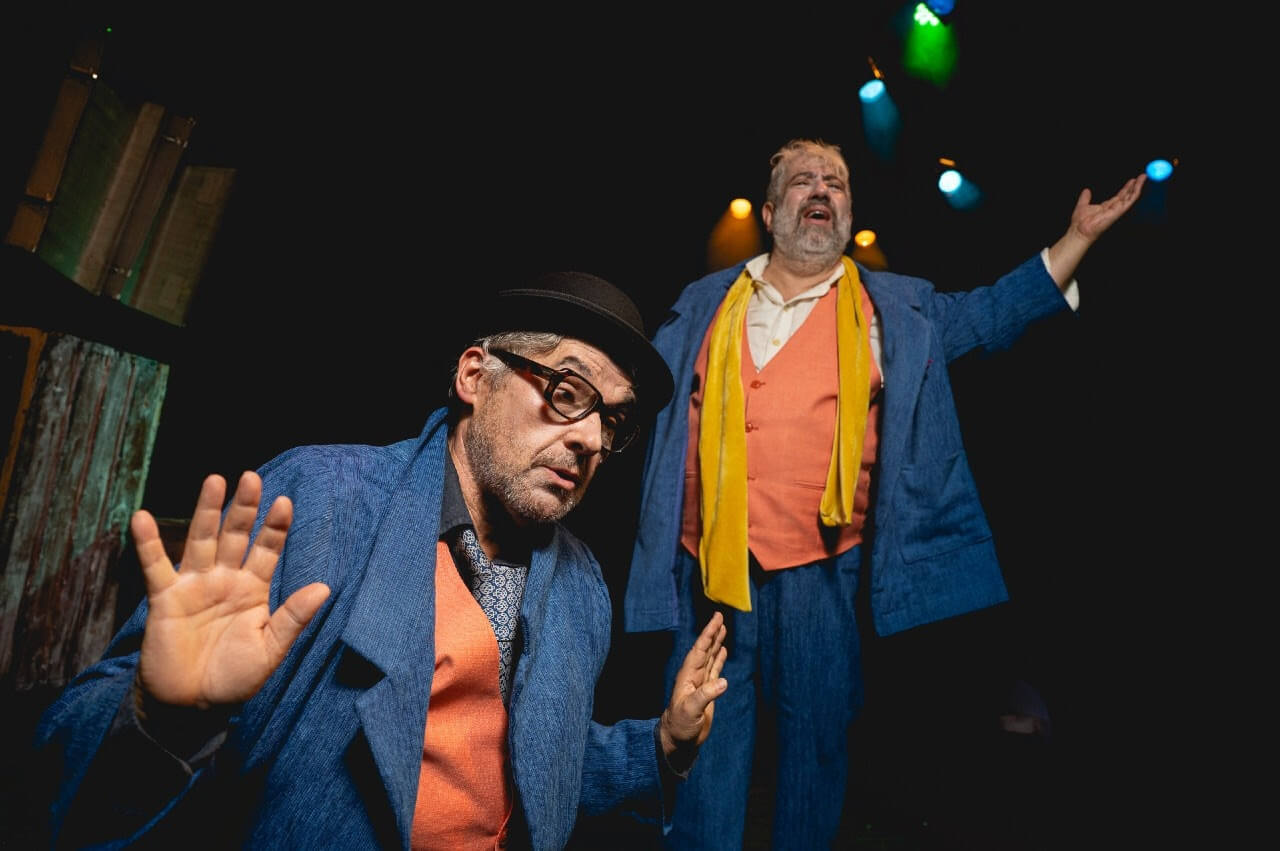 Θα αναρωτηθεί κανείς βέβαια, πως γίνεται να πρωταγωνιστεί ο Μπέκετ σε παράσταση του σήμερα, γνωρίζοντας πως έχει προ καιρού απελεύσει. Την απάντηση δίνει μ’ ένα έξυπνο και εντυπωσιακό εύρημα ο σκηνοθέτης (και πρωταγωνιστής) της παράστασης, ο Νίκος Καμτσής, που έρχεται να μας δείξει πως μπορούμε να αξιοποιήσουμε θετικά την τεχνολογία, χωρίς η τεχνητή νοημοσύνη να υποκαθιστά τον άνθρωπο, που απώλεσε πια κάθε ρανίδα της δικής του. Τα ευρήματα όμως δε σταματούν εκεί, καθώς εξίσου δραστήριο και ενεργό στην παράσταση είναι ως και το δέντρο, καταργώντας ακόμη και τη ριζική του ακινησία. Συνολικά, η σκηνοθετική ματιά του Καμτσή είναι αξιόλογη, άκρως ατμοσφαιρική και λυρική, αρμονικά συντεταγμένη με το κείμενο του Καζάν, που ανεβαίνει σε παγκόσμια πρώτη στη σκηνή του Θεάτρου “Τόπος Αλλού”. Το έργο του Καζάν αναδεικνύει το κινηματογραφικό γονίδιο που κυκλοφορεί στο αίμα του. Με ένα κείμενο ευφυές, καλογραμμένο και εύρυθμο, πλούσιο σε θεατρικά αυτοαναφορικά στοιχεία, προσεγγίζει με ευλαβικό σεβασμό το έργο του Μπέκετ, ενσωματώνοντας το ίδιο καυστικό χιούμορ, που προκαλεί πηγαίο γέλιο στο κοινό, διατηρώντας το χαρακτήρα της “τραγικωμωδίας”. Στο σημείο αυτό, πρέπει να αναφερθεί και μια ακόμη καινοτομία, η εισβολή του γυναικείου φύλου στο μπεκετικό έργο, που εξέπληξε τόσο τους ήρωες, όσο και το κοινό. Αντί των γνωστών και αναμενόμενων Πότζο και Λάκι, εμφανίζεται μια νεαρή όμορφη κοπέλα με έντονο ταμπεραμέντο, που αναζητά κι αυτή εναγωνίως, όχι τον ίδιο τον Γκοντό, αλλά το σπίτι του. Τη μπριόζα αυτή πινελιά ανέλαβε να προσθέσει η περφόρμερ, Ναταλί Φλουρή, με τις φωνητικές της ικανότητες να κλέβουν τις εντυπώσεις. Στο εικαστικό αποτέλεσμα της παράστασης συνέβαλαν καθοριστικά τα απολύτως εναρμονισμένα κοστούμια της Μίκας Πανάγου και τα σκηνικά της Ιωάννας Καραγιώργου, λιτά, καθημερινά και άκρως θεατρικά. Εν κατακλείδι, οι Νίκος Καμτσής και Δημήτρης Φραγκιόγλου, συμπρωταγωνιστές και συνοδοιπόροι, πολύπειροι θεατράνθρωποι με απαράμιλλη χημεία και υποκριτική δεινότητα υφαίνουν επιμελώς το έργο, προσφέροντάς μας μια σπιρτόζικη και απολαυστική παράσταση, που πραγματικά επιβάλλεται να παρακολουθήσει κάθε άνθρωπος που αγαπά την ύψιστη έκτη τέχνη.