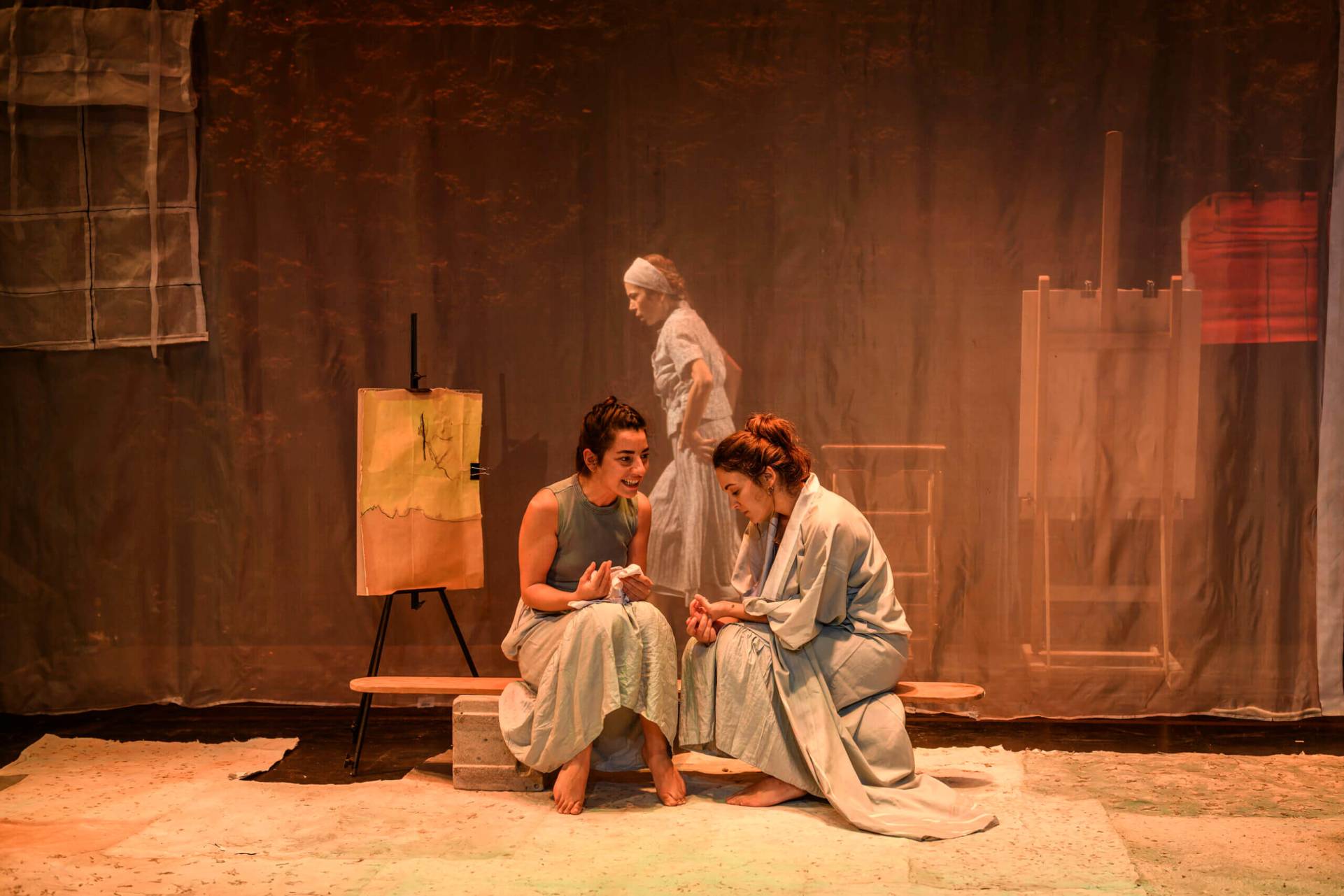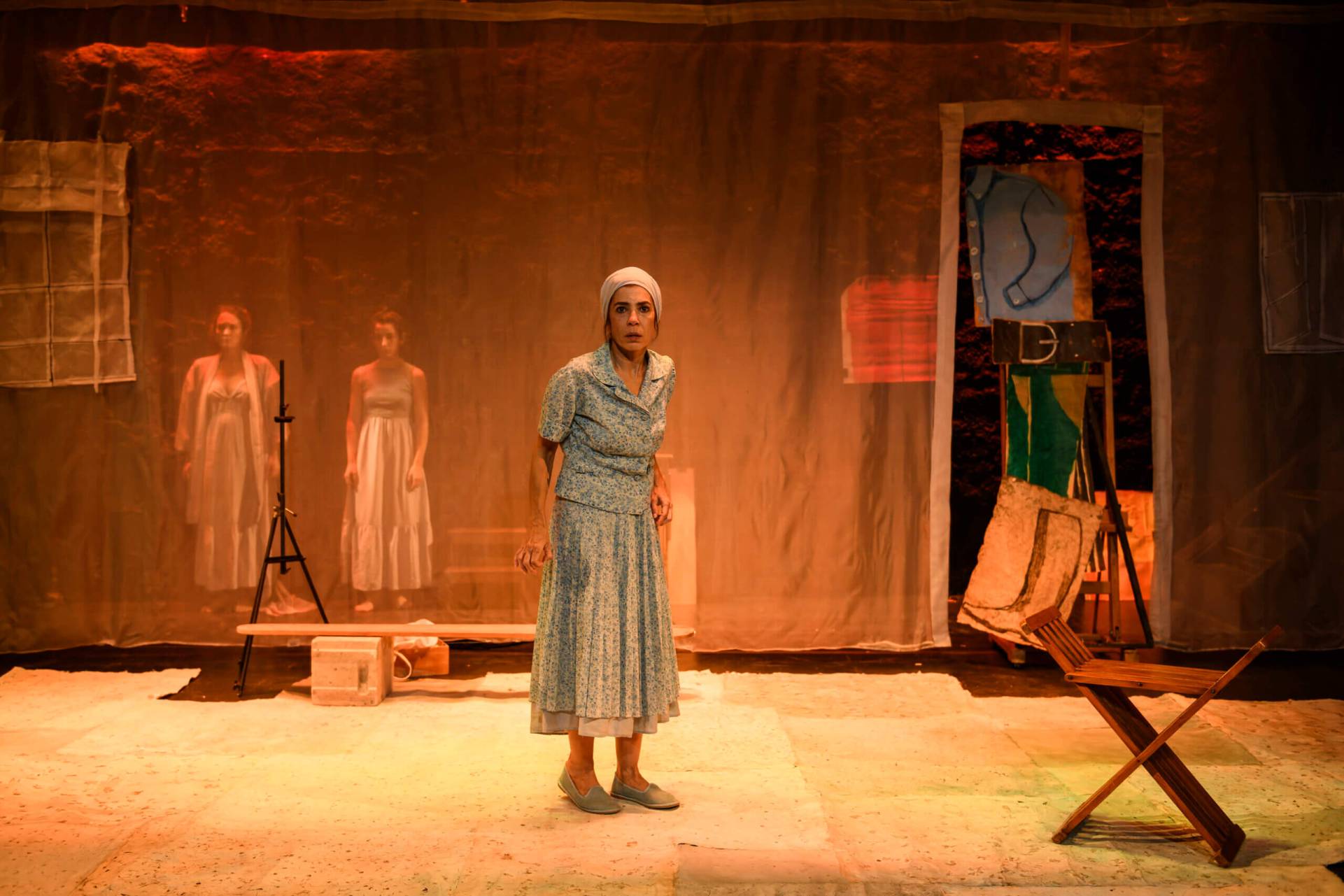 Το εικαστικό περιβάλλον που επιμελείται η Μάρια Μπαχά, παραπέμπει σε κάτι ονειρικό. Ανοιχτόχρωμα μωβ-λιλά χρώματα, πίνακες ζωγραφικής και αραχνοΰφαντα πέπλα, δημιουργούν μια υψηλή αισθητική μέσα στην οποία μπορεί να ανασάνει, μπορεί να ανθίσει η γυναικεία ευαισθησία. Οι φωτισμοί του Εύθυμη Χρήστου, τρυφερά αγγιχτικοί, συνεργάζονται αρμονικά, συναισθάνονται. Η Μαρία Ζορμπά με στοργικότητα που είναι ορατή, δίνει καρδιά και ψυχή στο έργο, στις ηθοποιούς, στο όλο στήσιμο της παράστασης. Η σκηνοθεσία της διέπεται από βαθιά ευαισθησία κι ακόμα πιο βαθιά γνώση της γυναικείας ψυχοσύνθεσης.