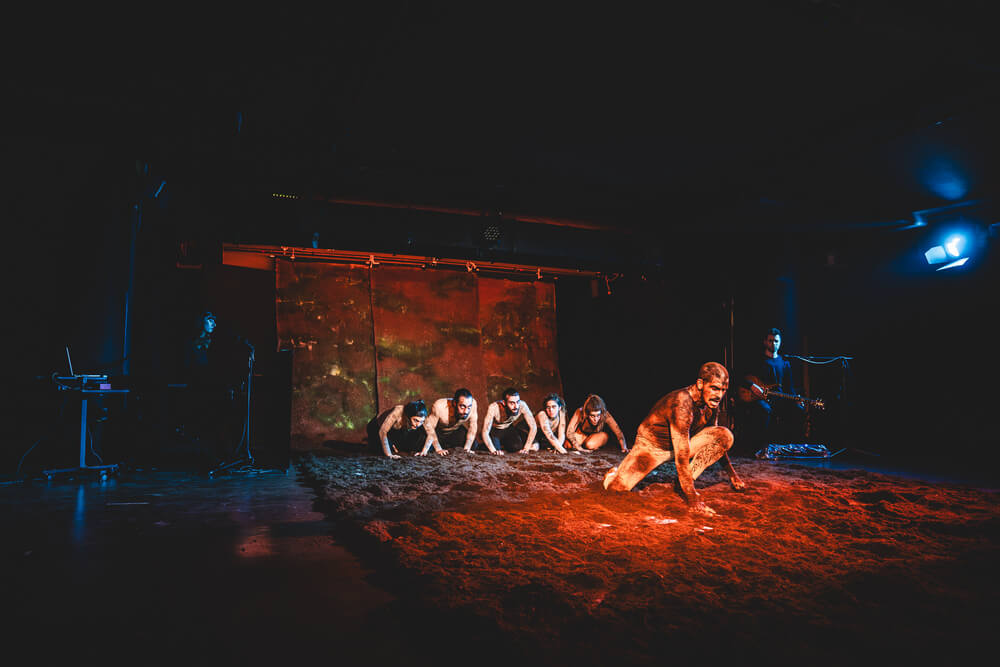 Αρωγοί στην προσπάθειά τους πολλοί: η μουσική της Ελένης Αλιφραγκή, την οποία αναπαράγει ζωντανά στη σκηνή μαζί με τον Βαγγέλη Σταθόπουλο, η εξαιρετικά απαιτητική και μελετημένη κινησιολογική προσέγγιση της Αφροδίτης Καλαφάτη, οι καλοσχεδιασμένοι φωτισμοί του Γιάννη Καραλιά. Και βέβαια το χωμάτινο σκηνικό της Αλεξάνδρας Μπαρή, η οποία επιμελήθηκε και τα κοστούμια, αυτή η ευφυέστατη αλληγορική δημιουργία που παίζει πρωταγωνιστικό ρόλο στην παράσταση και σε συνδυασμό με τα παραπάνω δημιουργεί μια ανεπανάληπτη ατμόσφαιρα. Σαφώς όλα αυτά παίρνουν σάρκα και οστά από τους/τις ηθοποιούς Δάφνη Νικητάκη, Σπύρο Αναστασίνη, Αλέξανδρο Παυλίδη, Ηρώ Κόκκινου, Γεωργία Σωτηριανάκου και Πάνο Μαλικούρτη. Με το δικό τους ιδρώτα, την πλαστικότητα και τις δυνατές τους ερμηνείες δημιουργούν μια άρτια παράσταση ορόσημο για το σωματικό -και όχι μόνο- θέατρο, καταδεικνύοντας πως το άθλημα αυτό είναι ομαδικό και η θεατρική ομάδα «Αυτή και Αυτοί» το γνωρίζει πολύ καλά.