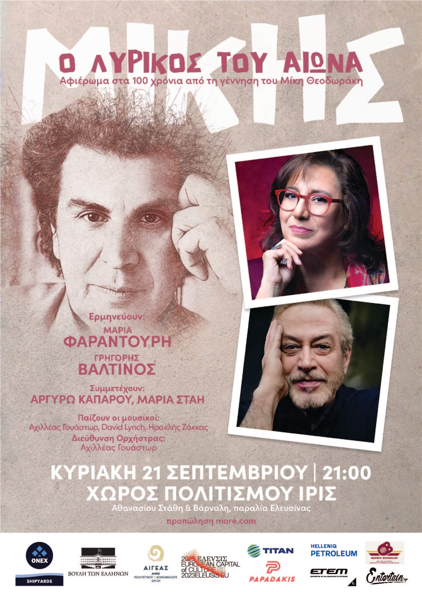 Η κορυφαία ερμηνεύτρια Μαρία Φαραντούρη, άρρηκτα συνδεδεμένη με το έργο και την προσωπικότητα του Μίκη Θεοδωράκη, μας προσκαλεί σε ένα μουσικό ταξίδι μέσα από τραγούδια που συνόδευσαν τις σημαντικότερες στιγμές της σύγχρονης ελληνικής ιστορίας. Με τη βαθιά, εκφραστική φωνή της, ξαναζωντανεύει έργα-ορόσημα που παντρεύουν την ποίηση με την αντίσταση, τη λυρικότητα με τη συλλογική μνήμη.