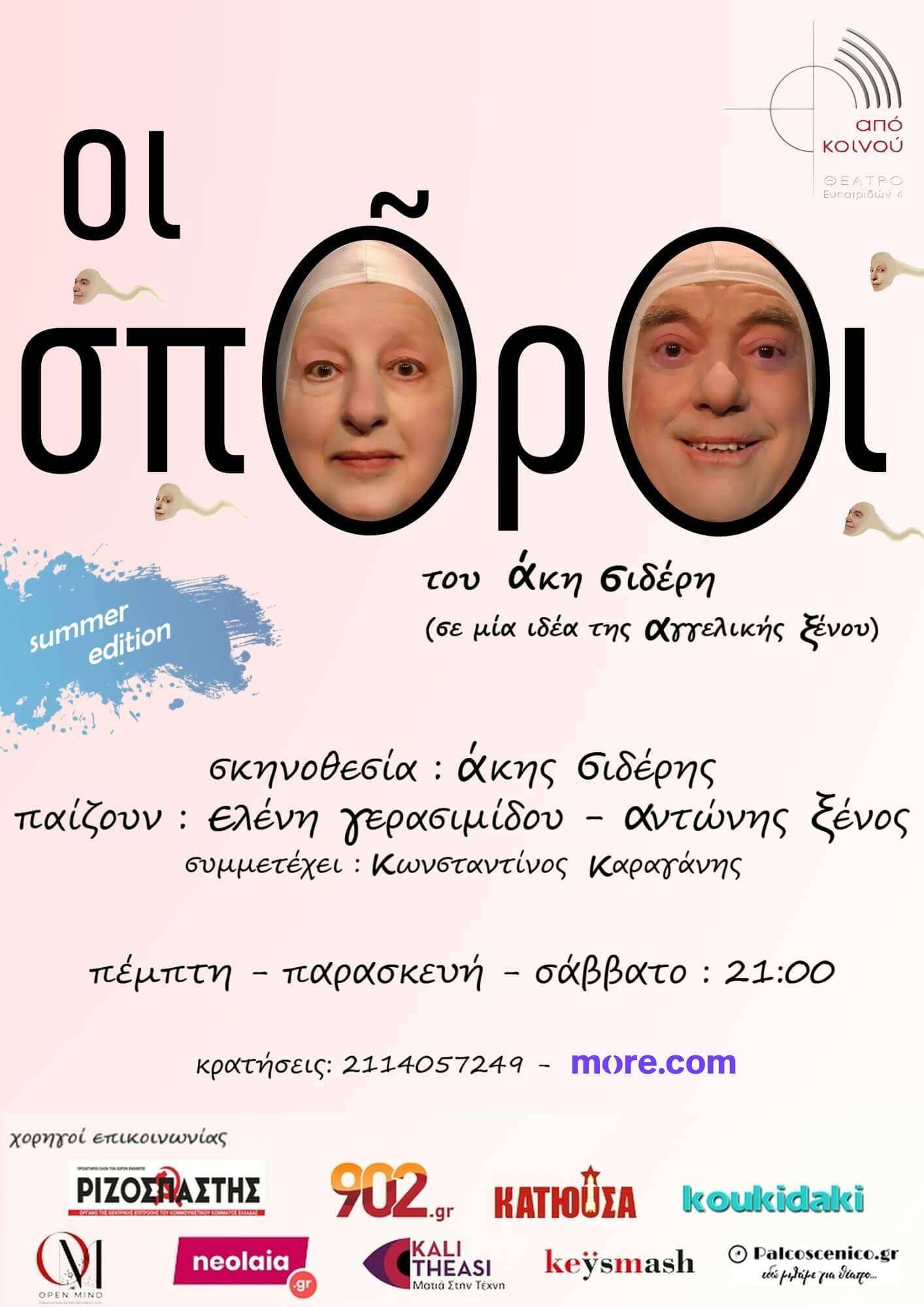 Ηλεκτρονική προπώληση: https://www.more.com/gr-el/tickets/theater/summer/oi-sporoi-summer-edition-tou-aki-sideri