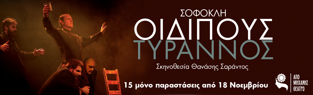 Η βραβευμένη παράσταση «ΟΙΔΙΠΟΥΣ ΤΥΡΑΝΝΟΣ» του Σοφοκλή (Βραβείο σκηνοθεσίας Κάρολος Κουν 2023) σε σκηνοθεσία και ερμηνεία Θανάση Σαράντου, που απέσπασε εξαιρετικές κριτικές από κοινό και κριτικούς, επαναλαμβάνεται για 15 μόνο παραστάσεις στο Από Μηχανής Θέατρο από 18 Νοεμβρίου.