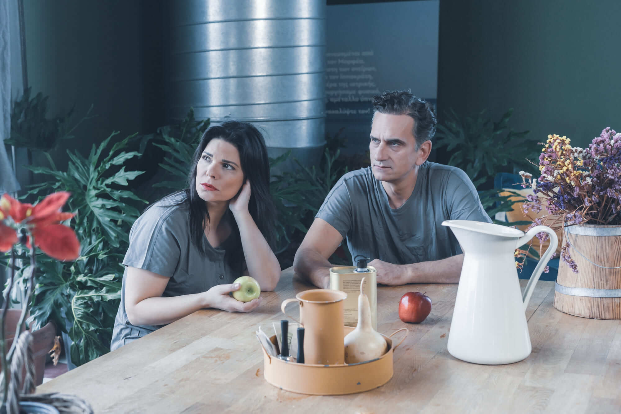 Κρατώντας την δομή και τους υπέροχα ειρωνικούς τίτλους των «σκηνών», η Έλενα Καρακούλη σκηνοθετεί τη Μαρίνα Ασλάνογλου και τον Νίκο Ψαρρά σε μια παράσταση για το υπαρξιακό πεδίο συνάντησης, αλλά και σύγκρουσης με τον Άλλον.