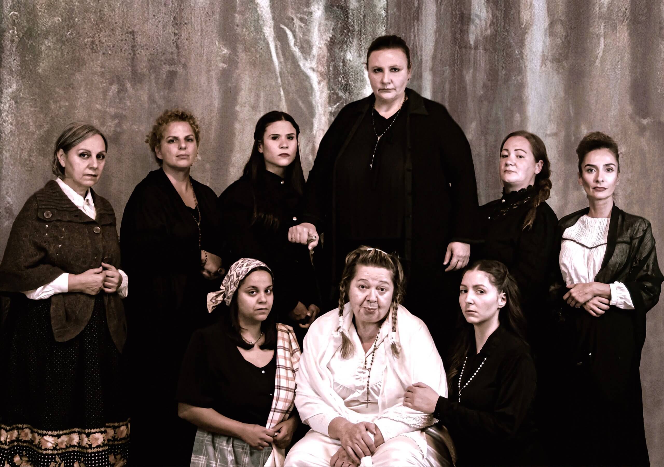 Μυγδαλιά Ανδρέου (Μπερνάρντα), Αριστέα Ανύση (Δούλα), Μαρία Δώρα Λέων (Αδέλα), Χριστίνα Μούζη (Μαγκνταλένα), Σωτηρία Χρυσικοπούλου (Ανγκούστιας), Σόνια Πούλη (Μαρία Χοσέφα), Σοφία Πασπαλιάρη (Πόνθια), Αναστασία Ραβάνη (Αμέλια), Παναγιώτα Χαϊδεμένου (Μαρτίριο).